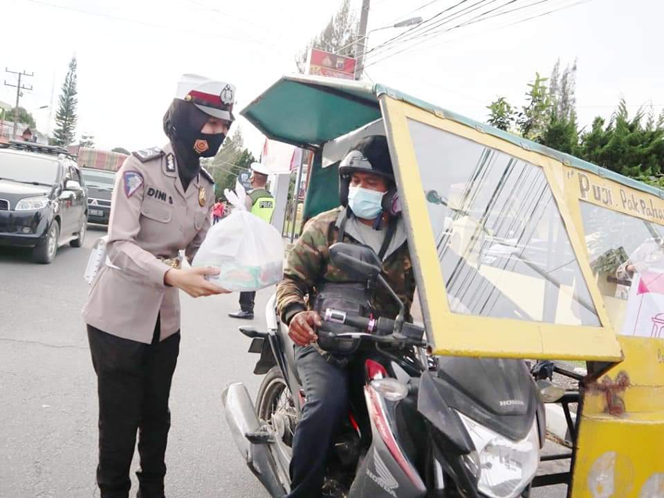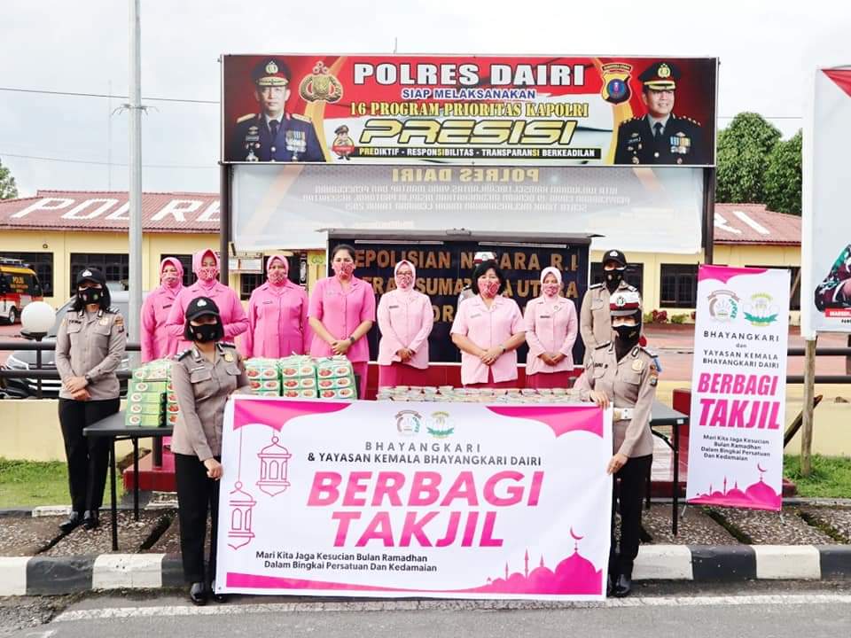 “Takjil dan nasi kotak yang dibagikan sebagai wujud nyata dan kepedulian Bhayangkari Polres Dairi kepada umat Islam yang melaksanakan ibadah puasa di bulan suci ramadhan di tengah pandemi Covid-19”, kata Donni.