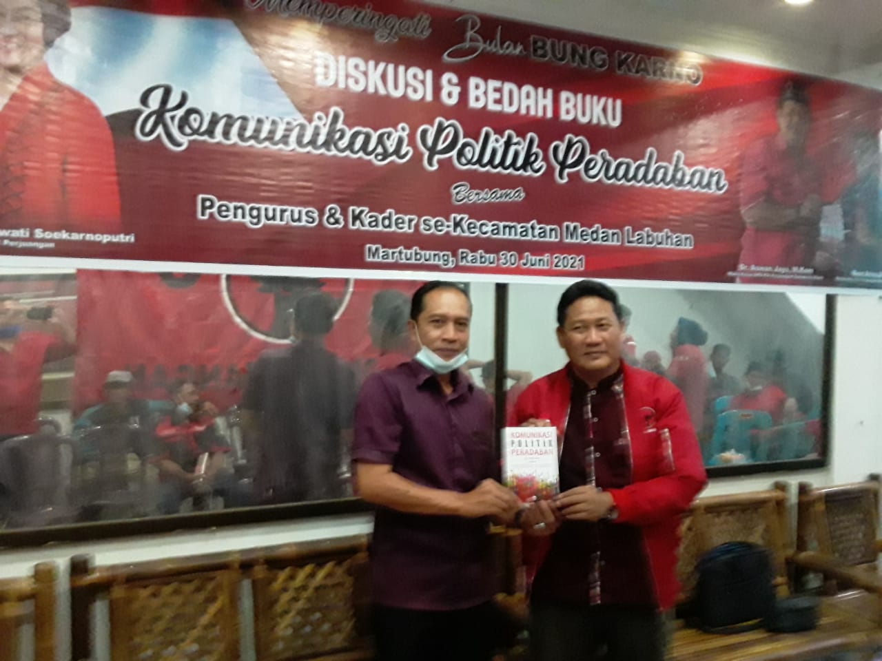 Hadir dalam kegiatan diskusi dan Bedah buku Komunikasi Politik Peradaban dihadiri segenap struktural dan kader partai PDI Perjuangan se kecamatan Medan Labuhan.