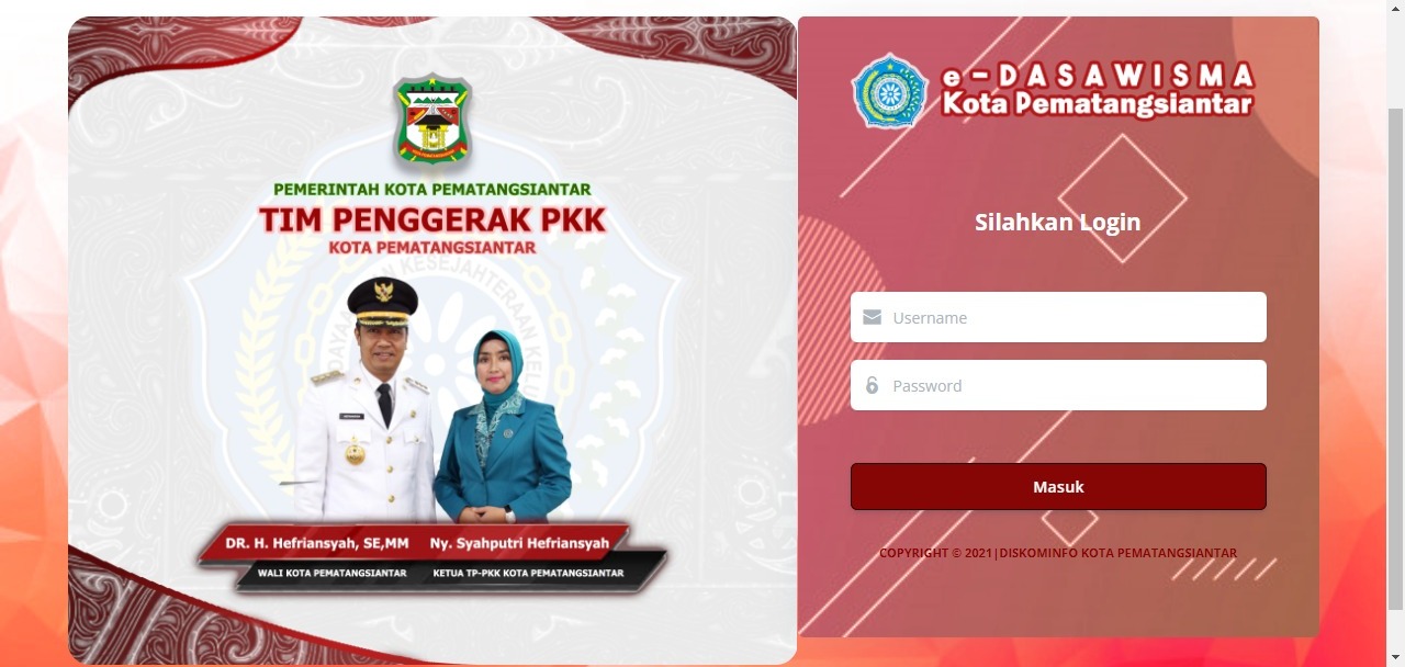 Febri Susanto Ambarita, ST, MT, Kamis (18/11), menyampaikan bahwa progres yang telah terlaksana adalah pembangunan domain yang beralamat di http://dasawisma.pematangsiantar.go.id dan pembangunan landing page.