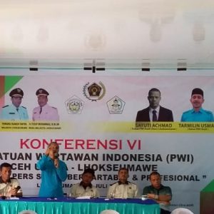 Lhokseumawe | Bongkarnews.com – Sayuti Ahmad kembali Terpilih Sebagai Ketua Persatuan Wartawan Indonesia (PWI), Kota Lhokseumawe dan Aceh Utara, Periode 2018-2021, dalam konferensi VI, yang di gelar di Aula kantor PWI Setempat, Senin (23/7).