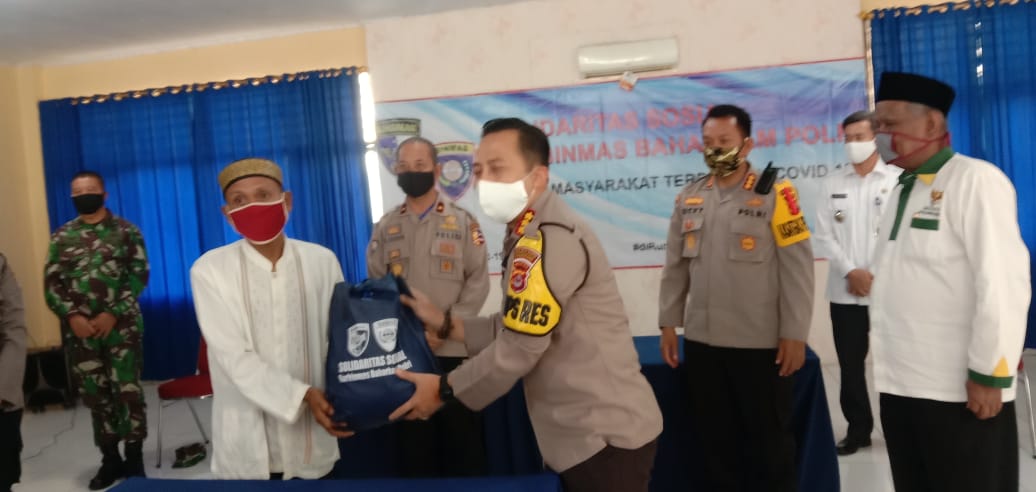 Dalam sambutannya Tajuddin menyampaikan bahwa,” Kegiatan pembagian sembako oleh Kabaharkam Polri yang diaplikasikan dalam bentuk kegiatan Sosial yang diberi nama Solidaritas Sosial Korbinmas Baharkam Polri semata mata dalam rangka mendukung program pemerintah dengan harapan semoga dapat memutus rantai penyebaran dampak covid-19.