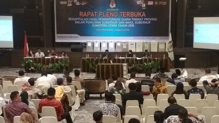 Medan | Bongkarnews.com- Komisi Pemilihan Umum (KPU) Sumut menggelar rapat pleno terbuka Rekapitulasi Hasil Penghitungan Suara Tingkat Provinsi Dalam Pemilihan Gubernur dan Wakil Gubernur Sumut 2018-2023.