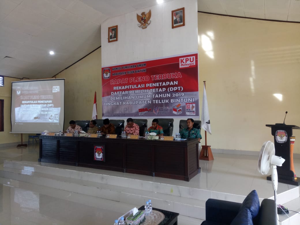 Pleno yang dipimpin langsung ketua dan anggota komisioner kabupaten Teluk Bintuni tersebut menghasilkan DPT yang disahkan 24 distrik, dan 2 distrik disahkan dengan catatan ditinjau kembali mengingat jumlah DPT lebih banyak dibandingkan jumlah penduduk, adapun ke dua distrik tersebut Distrik Moskona Barat, dan distrik Moskona Utara dengan rincian sebagai berikut.