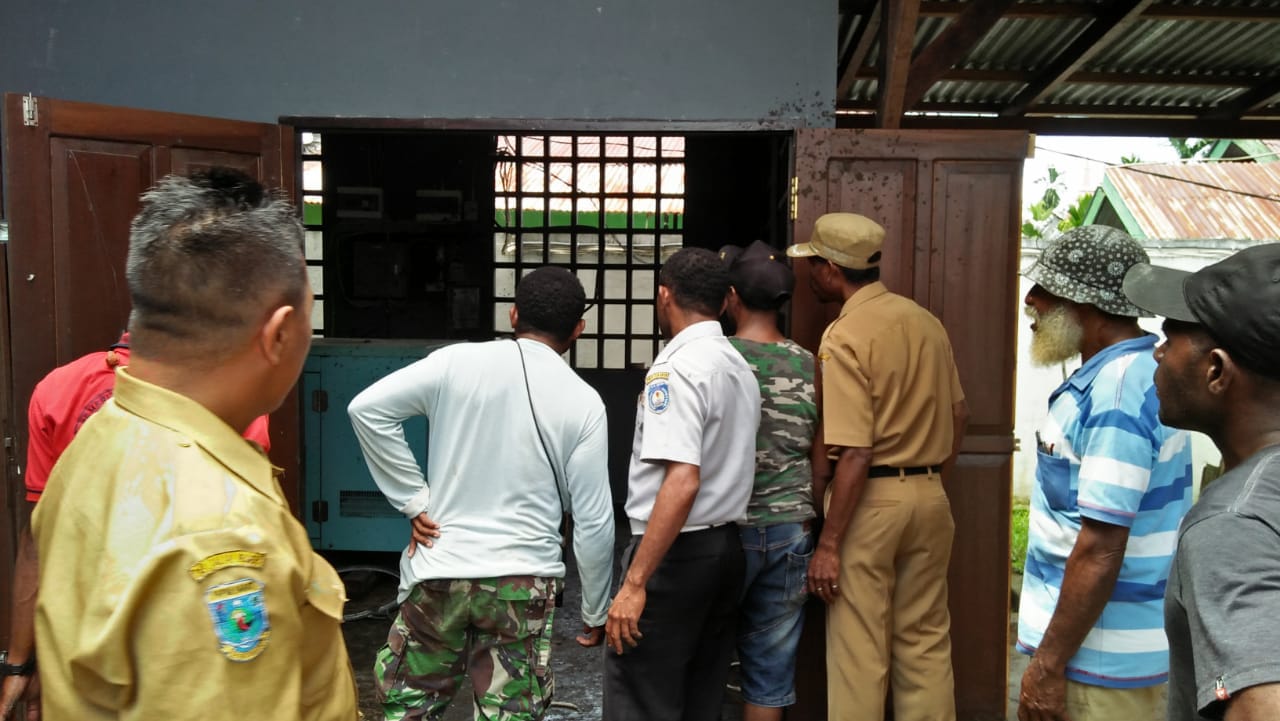 Foto : Kepala Badan Pendapatan Daerah (BPD) Teluk Bintuni Benyamin Sapari , Sekretaris BPD dan pegawainya di Kamar genset.