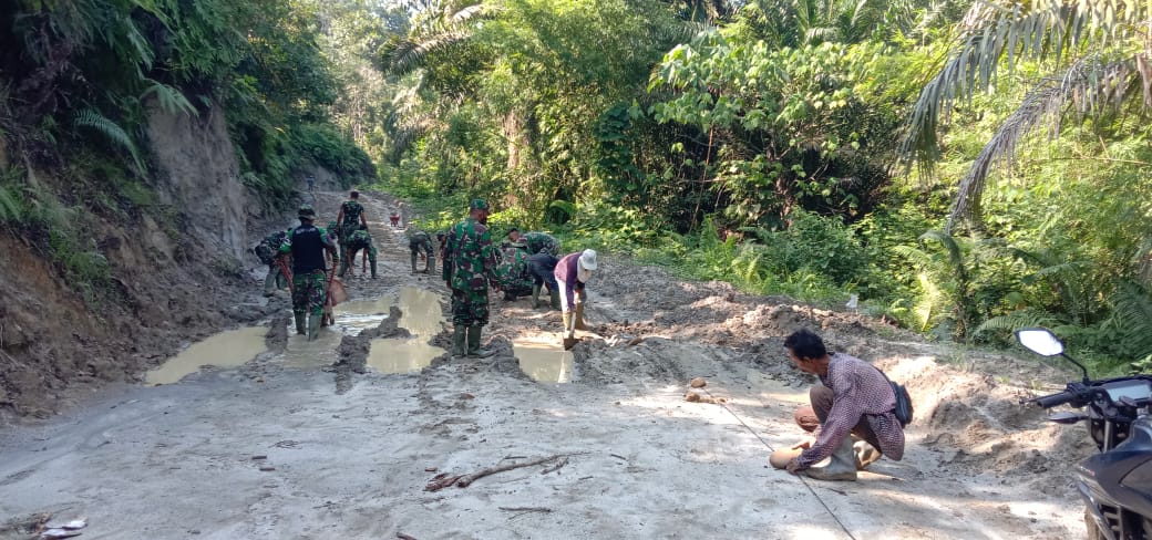 Bangun Purba I bongkarnews.com-Medan berlumpur akibat hujan terus menerus yang mengguyur di lokasi TMMD ke-111 Kodim 0204/DS di Desa Mabar, Kecamatan Bangun Purba, Kabupaten Deliserdang, menjadi kendala tersendiri bagi personel Satgas dalam mengerjakan sasaran fisik.