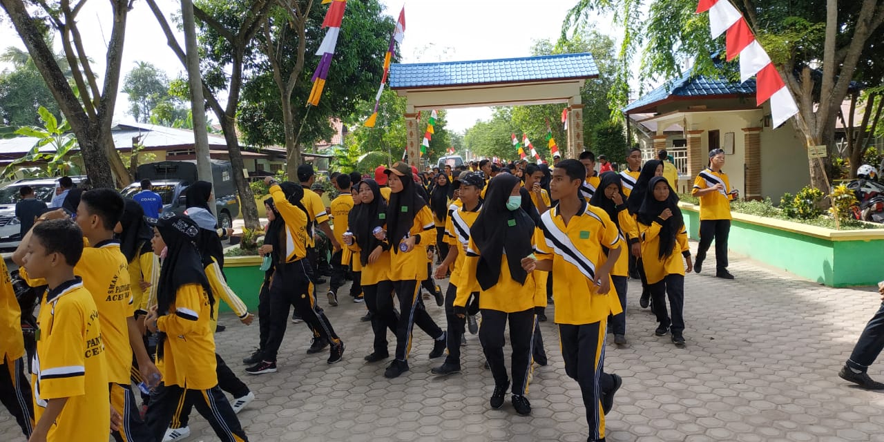 Aceh Utara | BN – Ribuan Siswa – Siswi se Tanah Jambo Aye mengikuti jalan santai dalam rangka memeriahkan HUT RI ke – 73 dan acara tersebut diselenggarakan oleh SMAN 1 Tanah Jambo Aye, Kabupaten Aceh Utara, Provinsi Aceh ( 15/08/2018 ).