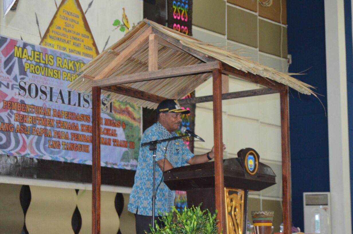BINTUNI | bongkarnews.com – Bertempat di Gedung Serba Guna (GSG), Sabtu (28/7) Majelis Rakyat Papua (MRP) melakukan sosialisasi pembentukan Raperdasus DBH Migas dan Rekrutmen tenaga kerja local Orang Asli Papua pada pembangunan train III LNG Tangguh.