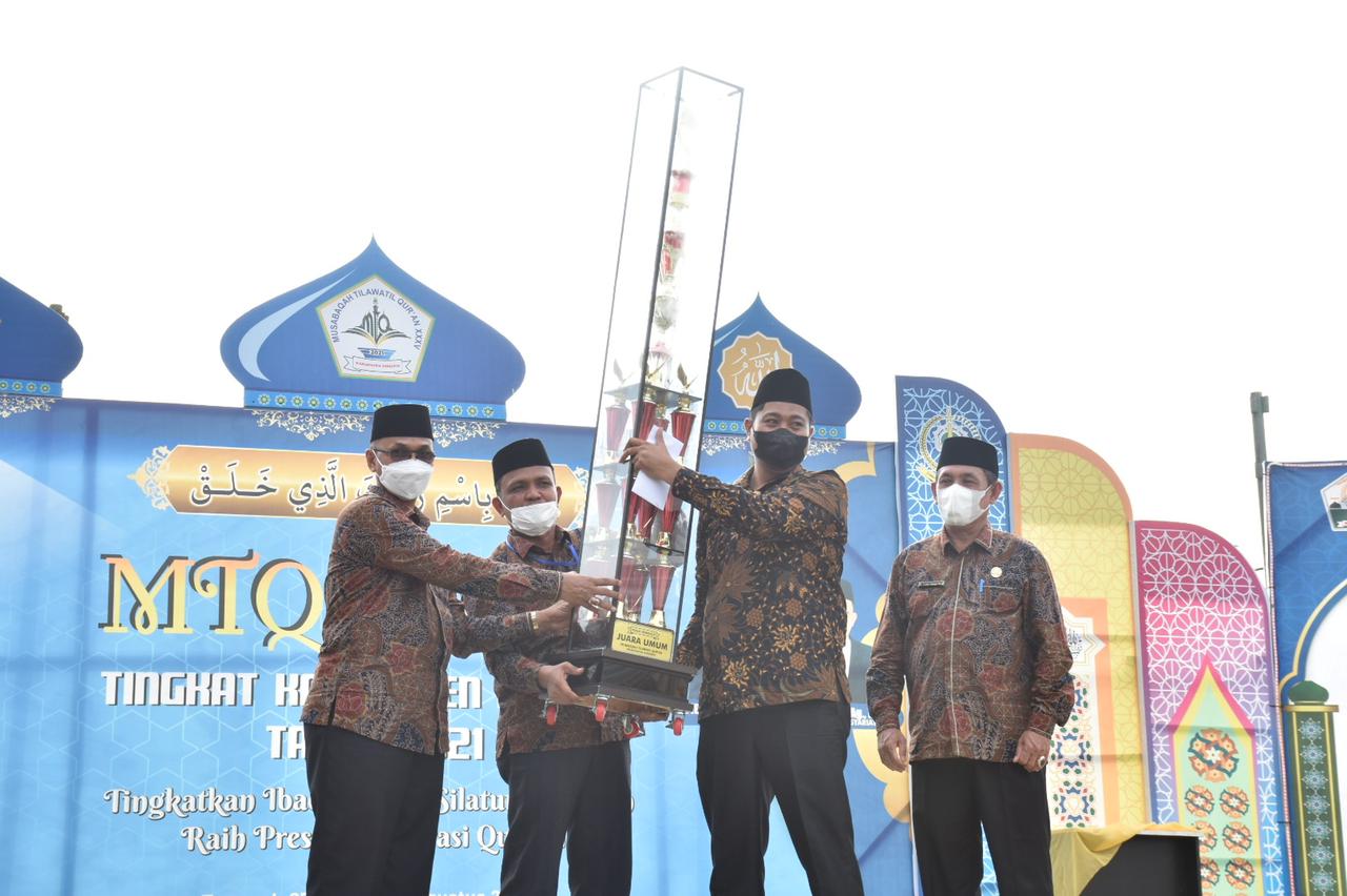 Sementara piala bergilir MTQ ke 35 diserahkan Bupati Bireuen, Dr H Muzakkar A Gani, SH, M.Si yang diterima Camat Gandapura, Mirza Fahmi, SSTP, di panggung utama di Mesjid Agung, Bireuen, Senin (2/8).