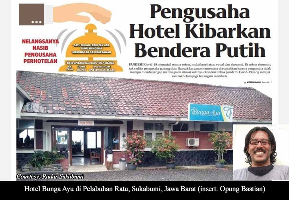 Sukabumi | bongkarnews.com – Perpanjangan waktu PPKM (Penerapan Pembatasan Kegiatan Masyarakat) yang dilakukan secara terus-menerus belakangan ini terasa sangat berat bagi pelaku pariwisata. “Terus terang saja, dalam beberapa hari ini kami sebagai pelaku pariwisata dengan sangat berat, terpaksa mengibarkan bendera putih di depan setiap hotel dan restoran,” ungkap Opung Bastian, pengelola Hotel Bunga Ayu, salah satu hotel favorit di pinggiran pantai Pelabuhan Ratu, Sukabumi, Jawa Barat, Kamis, 29 Juli 2021.