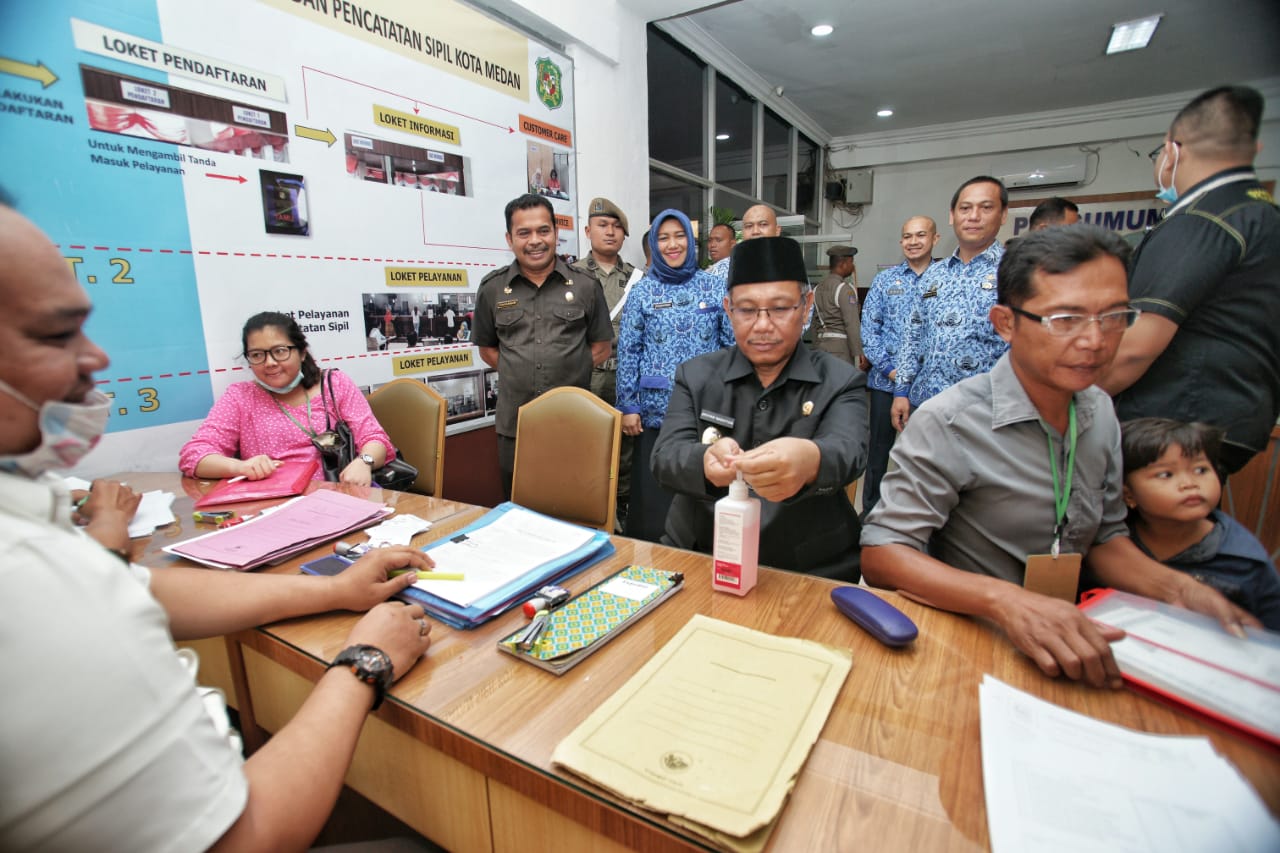 Lokasi pertama yang ditinjau Akhyar yakni Kantor Dinas Kependudukan & Pencatatan Sipil (Disdukcapil) Kota Medan, Jalan Iskandar Muda Medan. Saat tiba, Akhyar didampingi Kadisdukcapil Zulkarnain langsung menuju wastafel yang berada di