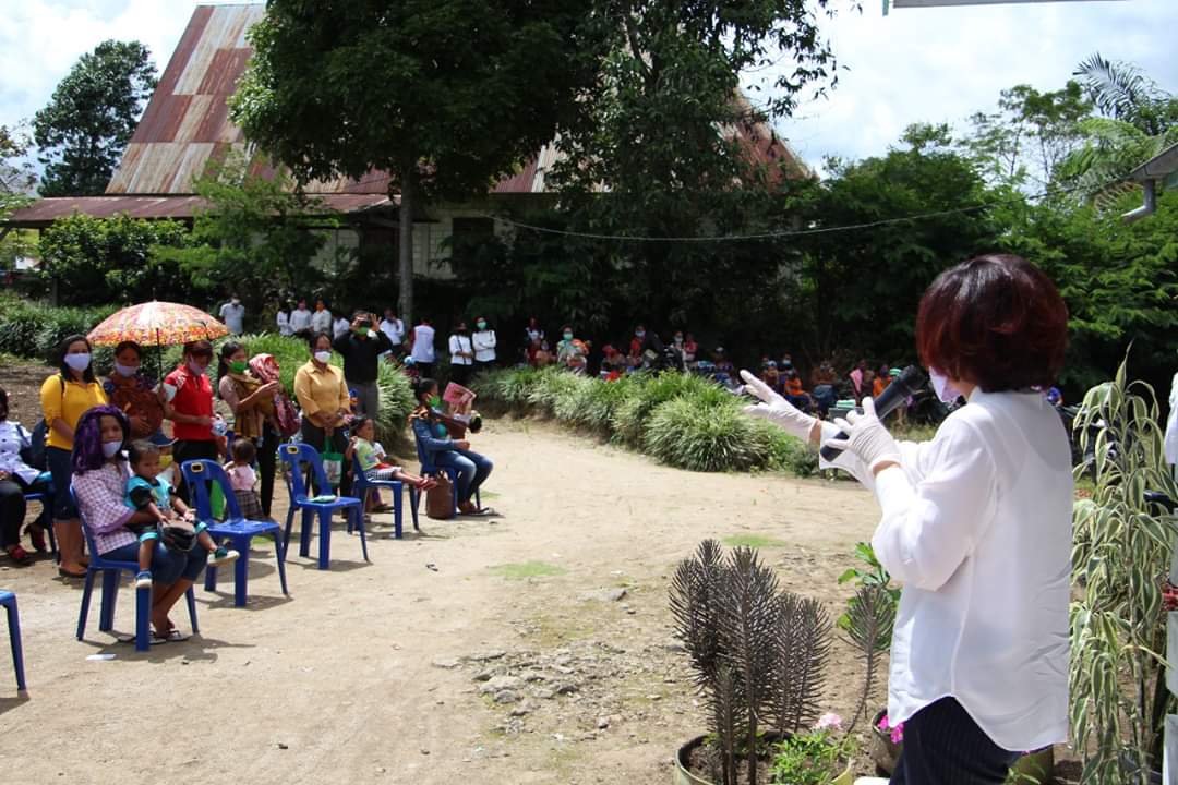 DAIRI bongkarnews – Memastikan kegiatan Posyandu tetap berjalan dengan baik di tengah Pandemi Covid-19, Ketua Tim Penggerak PKK (TP. PKK) Kabupaten Dairi Ny. Romy Mariani Eddy Berutu melakukan kunjungan ke Posyandu di Perumahan Rorinata, Kecamatan Sitinjo dan Puskesmas Pembantu (Pustu) Sisolusolu, Desa Pegagan Julu V Kecamatan Sumbul pada Rabu (13/5).