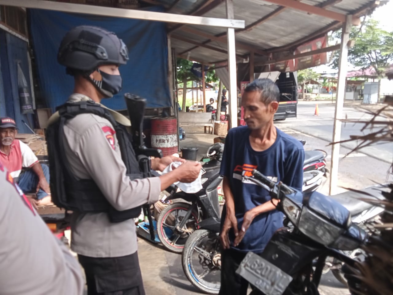 Dalam kegiatan ini kami tetap menghimbau masyarakat agar disiplin menjalankan anjuran pemerintah untuk selalu mentaati protokol kesehatan serta membagikan masker kepada warga yang tidak menggunakan masker.