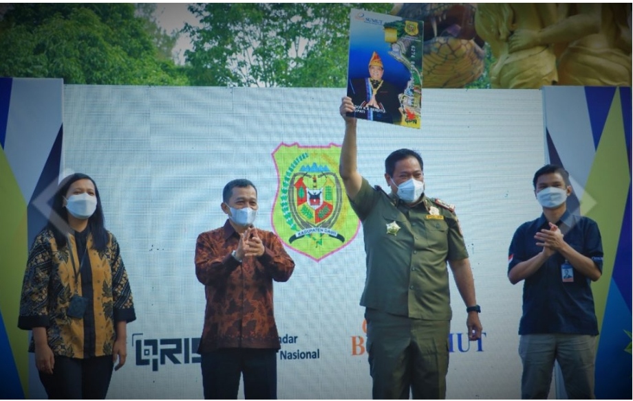 DAIRI | bongkarnews.com – Bupati Dairi Eddy Keleng Ate Berutu bersama Direktur Pemasaran Bank Sumut Hadi Sucipto, Deputi Direktur Pengawasan Bank Indonesia Kantor Perwakilan Sumut Nasrulloh, Perwakilan Otoritas Jasa Keuangan (OJK) Mariana Sianipar, melaunching Smart Elekronifikasi Transaksi Pemerintah Daerah (ETPD) Senin (12/4/2021) di Taman Firdaus Sitinjo.