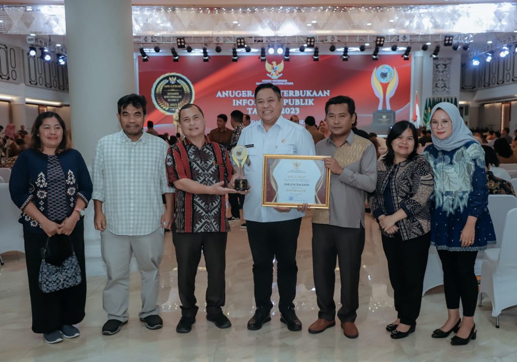 DAIRI | bongkarnews.com – Hanya dalam dua hari, Pemerintah Kabupaten Dairi kembali menorehkan prestasi dengan meraih Anugerah Keterbukaan Informasi Publik (KIP) dengan predikat Informatif dari Komisi Informasi Publik (KIP) Provinsi Sumatera Utara Tahun 2023 yang dilaksanakan di Aula Raja Inal Siregar, Kantor Gubernur Sumatera Utara, Selasa (15/8/2022).