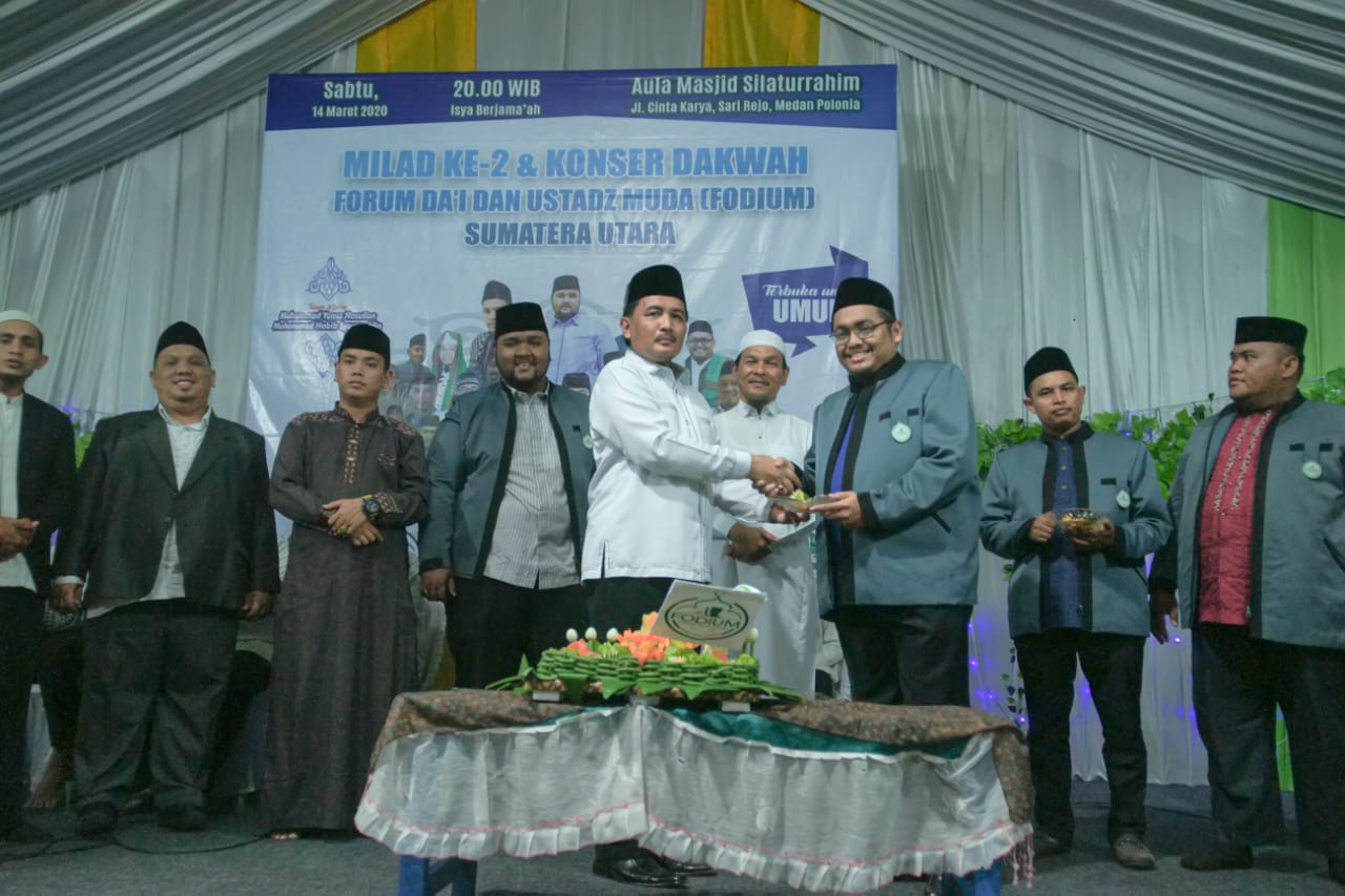 Demikian harapan Pelaksana tugas (Plt) Wali Kota Medan Ir H Akhyar Nasution MSi diwakili Kabag Agama Setdako Medan Adlan ketika menghadiri malam Konser Dakwah FODIUM Sumut di Aula Masjid Silaturahim, Jalan Cinta Karya, Kelurahan Sari Rejo, Kecamatan Medan Polonia, Sabtu (14/3) malam. Selain konser dakwah, acara juga dirangkai dengan peringatan Milad ke 2 FODIUM Sumut.