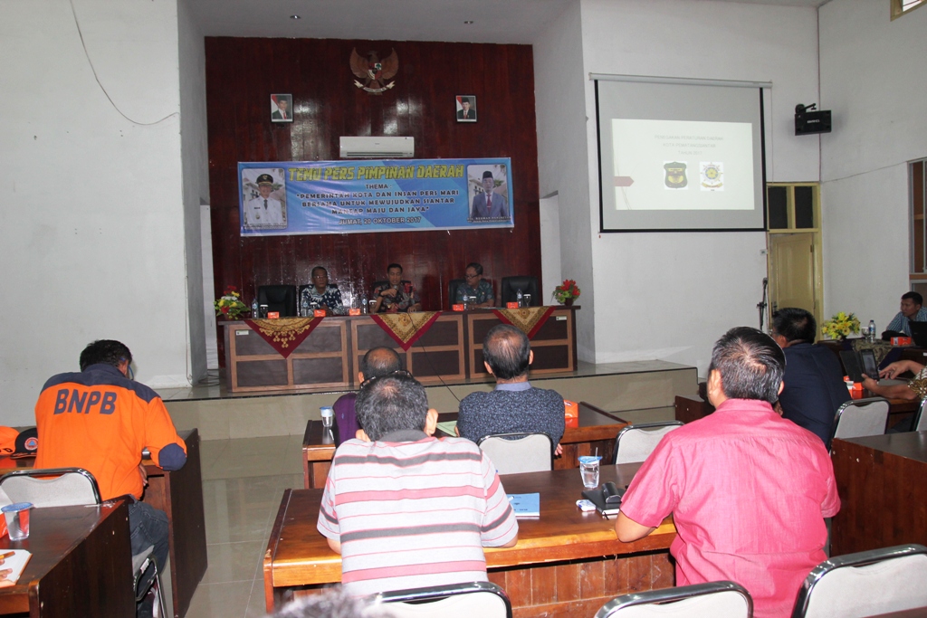 Pada kegiatan temu pers kali ini diisi laporan capaian kinerja hingga bulan September 2017 dari badan penanggulangan bencana daerah (BPBD) yang disampaikan langsung oleh kepala pelaksana Drs. Daniel Siregar dan satuan polisi pamong praja Satpol PP disampaikan kepala satuan (Kasat) Drs. Robert Samosir, dihadapan para asisten, staf ahli dan beberapa pimpinan organisasi prangkat daerah (OPD) dan para insan pers dari berbagai media yang memenuhi ruangan.(Humas/C1/C2).