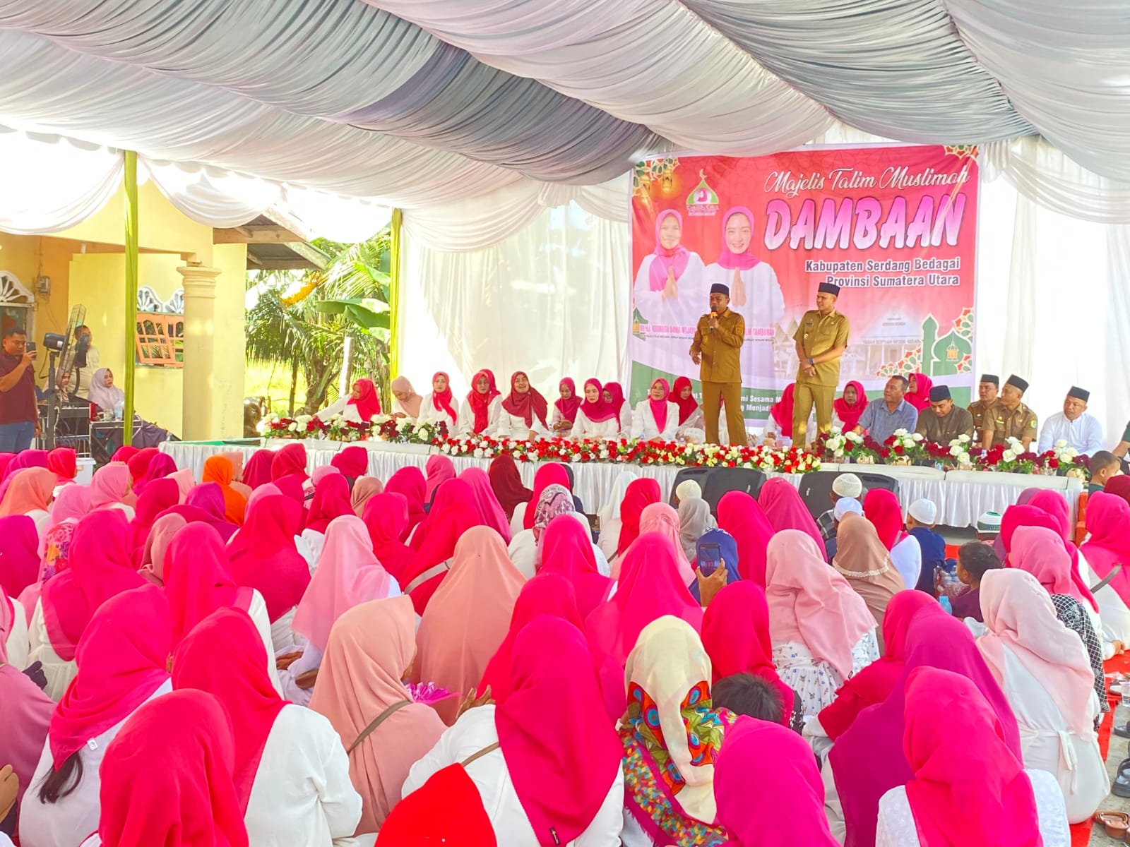 SERGAI | BONGKARNEWS – Bupati Serdang Bedagai (Sergai) H. Darma Wijaya bersama Wakil Bupati (Wabup) Sergai H. Adlin Tambunan menghadiri Pengajian Majelis Ta’lim Muslimah Dambaan (MTMD) Sergai yang digelar di Desa Kuta Baru, Kecamatan Tebing Tinggi, Senin (14/4/2025).