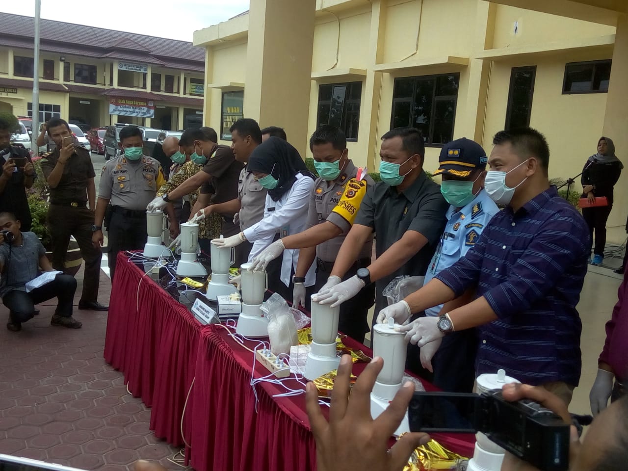 “hari ini kita akan melakukan pemusnahan ± 6.613,81 gram Sabu hasil penangkapan di 2 Lokasi yang berbeda yaitu pada hari kamis tanggal 13 September 2018 didepan SPBU Desa Alur Dua Kec. Langsa Baro, Kota Langsa dan pada hari Jumat tanggal 14 September 2018 dipinggir jln Sei Batanghari, Kota Medan, Prov Sumatera Utara,” ungkapnya.