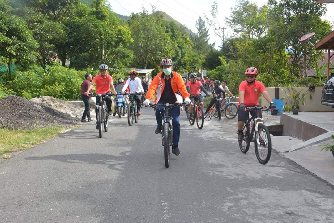 Tampak sejumlah pimpinan instansi begitu akrab saling bertegur sapa sembari mengayuh sepedanya masing-masing, menelusuri lintasan yang berliku di seputaran pantai Tao Silalahi. Wakajati Sumut, Jacob Hendrik Pattipeilohy SH MH ditemani oleh Aspidsus Agus Sahat Lumban Gaol SH MH dan Wadirkrimsus Polda Sumut AKBP Patar Silalahi, tampak kelihatan beberapa kali berbincang dengan Bupati Dairi Eddy Keleng Ate Berutu saat menikmati keseruan menelusuri lintasan yang begitu indah. Dari raut wajah para pimpinan itu, semuanya menunjukkan rasa kagum dan syukur bisa menikmati kepingan surga yang ada di tanah Dairi yang terletak di pinggiran Tao Silalahi.