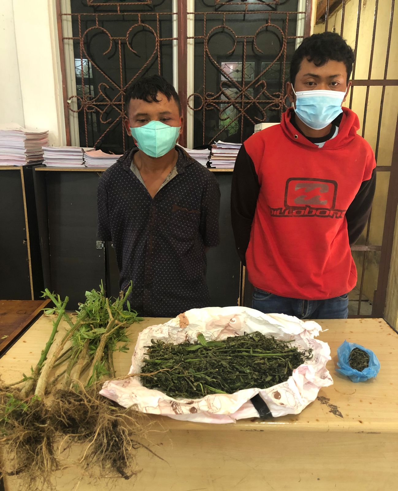 Dari kedua tersangka polisi menemukan barang bukti daun ganja kering seberat 520 gram yang dikemas dalam 2 plastik dan 10 batang pohon ganja.(ep)