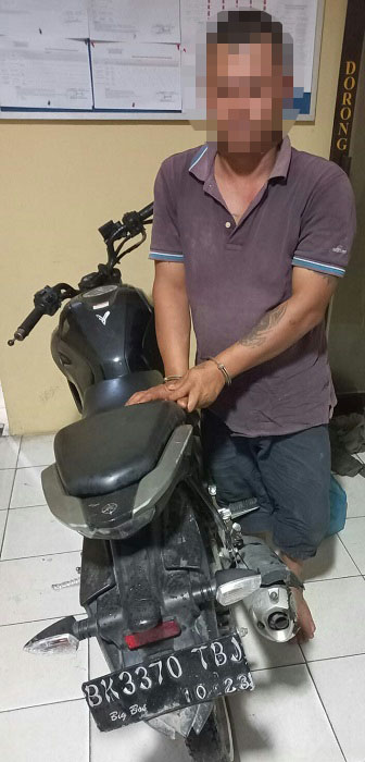 Pelaku PT diringkus di rumahnya di Jl. Tuan Rondahaim Saragih, Kel. Tanjung Pinggir, Senin (24/1) pukul 18:48 dan menyita barang bukti satu unit sepedamotor Yamaha Vixion warna hitam BK 3370 TBJ.