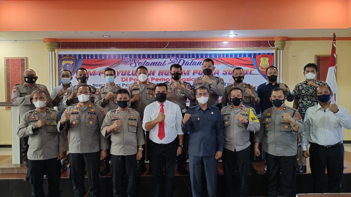 Tim Sosialisasi Bidkum Polda Sumut dipimpin oleh Kompol L. Purba, didampingi Brigadir Kristian dan Briptu Indra, sementara pejabat Polres Simalungun yang mengikuti sosialisasi tersebut yakni Wakapolres Simalungun Kompol Efianto, Kabag SDM Polres Simalungun Kompol J. Purba, Kabag Log Polres Simalungun Kompol G. Damanik, Seluruh Kapolsek se – jajaran Polres Simalungun, para Kasi Kum dan perwira Polres Simalungun.
