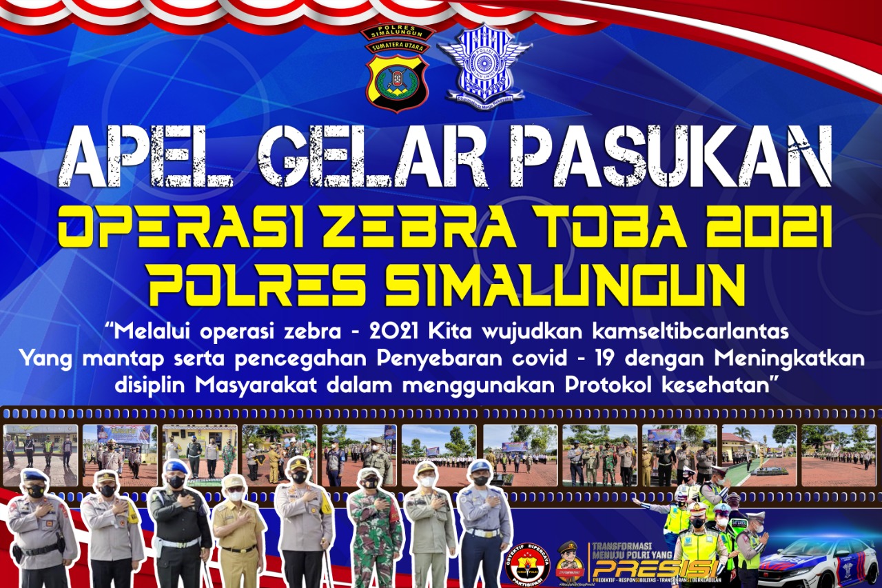 Dimulainya Ops Zebra Toba 2021 di wilayah hukum Polres Simalungun itu ditandai pemasangan pita kepada perwakilan personil yang bertugas oleh Wakil Bupati Simalungun H. Zonny Waldi Bahrias, S.Sos. MM yang disaksikan Kapolre Simalungun AKBP Nicolas Dedy Arifianto SH, SIK, MH, Dandim0207/ Simalungun diwakili Pasi Ops Kapten Inf Toto Ragil, Dandenpom 1/I Pematangsiantar Mayor CPM Binson Simbolon, Kabid Penegak Perda Lamhot Manurung, Waka Polres Kompol Efianto, SH, MH dan Kabag Ops Kompol Suriyanto ST, SH MH.