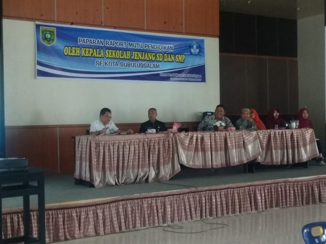 SUBULUSSALAM | bongkarnews.com –Dinas Pendidikan dan Kebudayaan kota Subulussalam melaksanakan rangkaian acara pelaporan pemaparan Raport mutu pendidikan dan SDM kepala tingkat SD, SMP sekota Subulusslam selama 5 hari dimulai tanggal 3 sampai tanggal 8 Febuari 2020 di aula Dinas Pendidikan.
