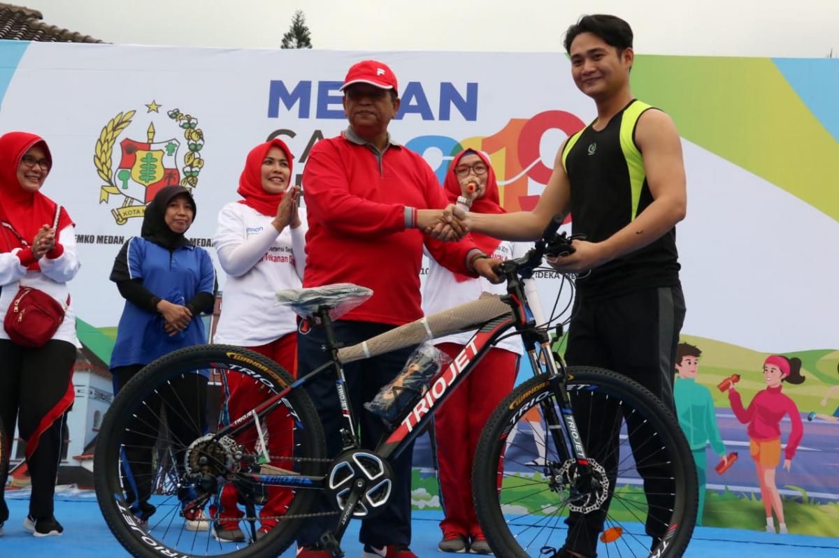 Senam bersama ini pun terasa lebih menggembirakan, sebab seusai senam para peserta di ajak bermain games dan mendapatkan berbagai hadiah menarik. Tidak hanya itu saja, Pemko Medan juga menyediakan lucky draw dengan hadiah utamanya dua unit sepeda.