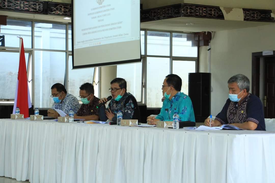 DAIRI | bongkarnews.com – Sekretaris Daerah (Sekda) Kabupaten Dairi Drs. Leonardus Sihotang yang juga sebagai Sekretaris Gugus Tugas Percepatan Penanganan Covid-19 Kabupaten Dairi pimpin rapat dan diskusi terkait Prosedur Pemulasaran dan Pemakaman Jenazah Covid-19 di Gedung Balai Budaya Sidikalang pada hari Kamis, (6/8/2020).