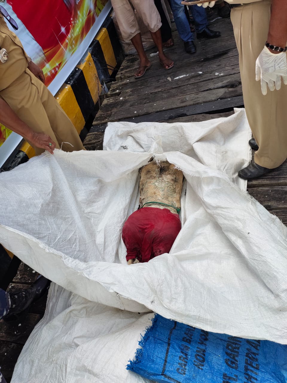 Kondisi mayat yang mengunakan celana training pendek warna merah itu sudah sangat mengenaskan tanpa kepala dan tanpa kedua tangan hanya tinggal tengkorak.