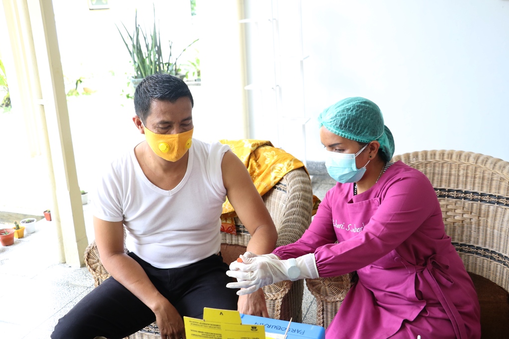 “Alhamdulillah, saya sudah divaksin. Kemarin vaksin saya tertunda dikarenakan ada gejala batuk dan tensi tinggi,” sebutnya.