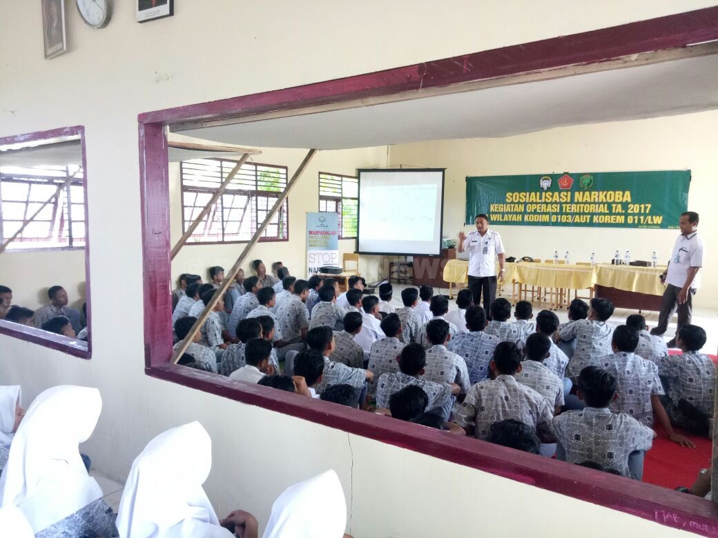 Sosialisasi tersebut dalam rangka kegiatan Non Fisik program Operasi Teritorial (Opster) TNI di Wilayah Kodim 0103/Aceh Utara jajaran Korem 011/Lilawangsa, Dengan tujuan memberikan pemahaman tentang bahaya Narkoba kepada Siswa/siswi, sekaligus demi menyelamatkan para generasi muda yang dihadiri, Danramil 05/STB Kodim 0103/Aut, BNNK (Kabupaten/Kota), Seluruh pelajar dan para Guru SMAN 1 Bayu.