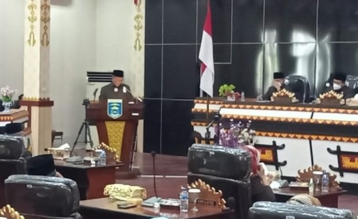METRO I bongkarnews.com – Rapat Paripurna DPRD Kota Metro pandangan umum fraksi -fraksi atas penyampaian Laporan Keterangan Pertanggung jawaban (LKPJ) Walikota Metro Tahun Anggaran 2020 dan jawaban walikota atas pandangan umum dan fraksi-fraksi.