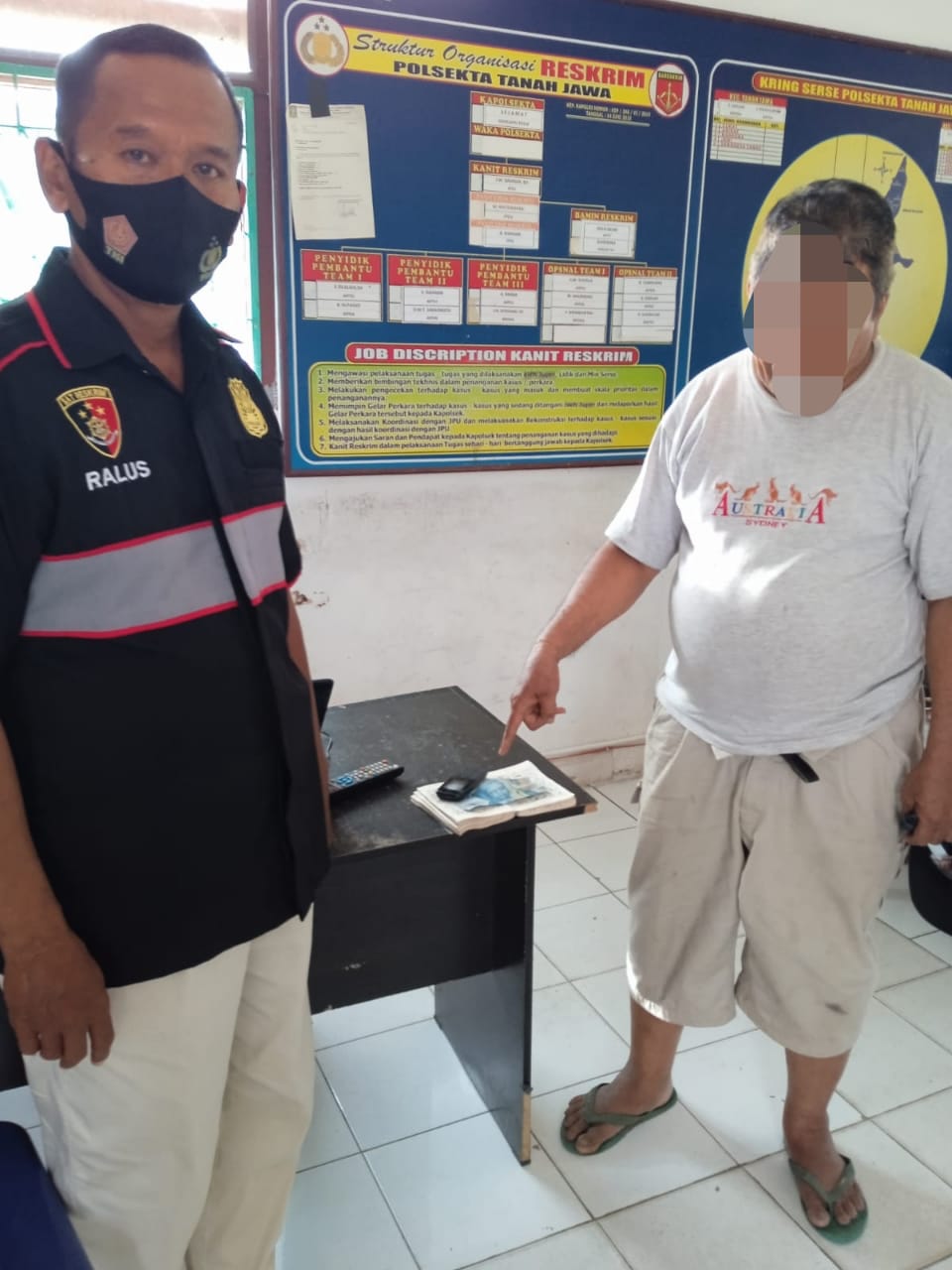 Melihat hal tersebut petugas bersama tiga orang rekan unit Reskrim lainnya mendekati laki-laki yang dicurigai tersebut dan langsung mengamankannya. Lalu laki-laki tersebut diintrogasi dan ditanyakan oleh petugas sedang apa dikedai tersebut, lalu pelaku tersebut sedang menjual nomor judi tebakan togel.