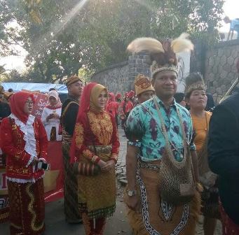 Dari Aceh turut menghadirkan dua orang peserta pawai dengan menggunakan pakaian adat Aceh, putra dan putri.