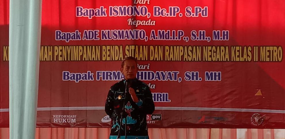 METRO | Bongkarnews.com – Wakil Walikota Metro Djohan menghadiri Serah terima jabatan (Sertijab) dan pisah sambut 2 Pejabat lembaga pemasyarakatan (Lapas) kelas IIA Kota Metro, Kepala Penyimpanan Benda Sitaan dan Rampasan Negara, hari ini resmi berganti, Pergantian itu ditandai dengan Serah Terima Jabatan (Sertijab) yang berlangsung di halaman Lapas setempat, Kamis (16/01/2020).