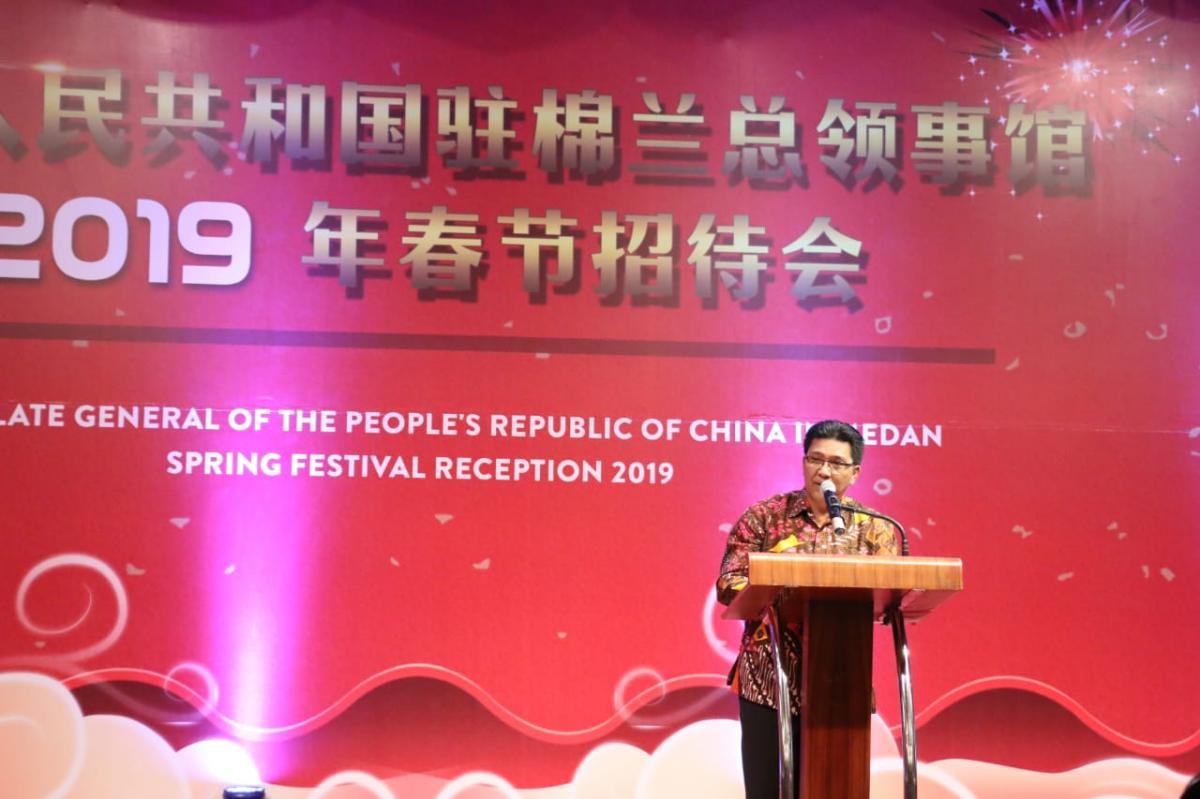 Festival Musim Semi, dikenal sebagai Tahun Baru China adalah festival tradisional yang paling penting masyarakat Tiongkok. Tampak hadir dan memberi sambutan pada perhelatan tersebut Konjen Tiongkok di Medan, Sung An.(ft)
