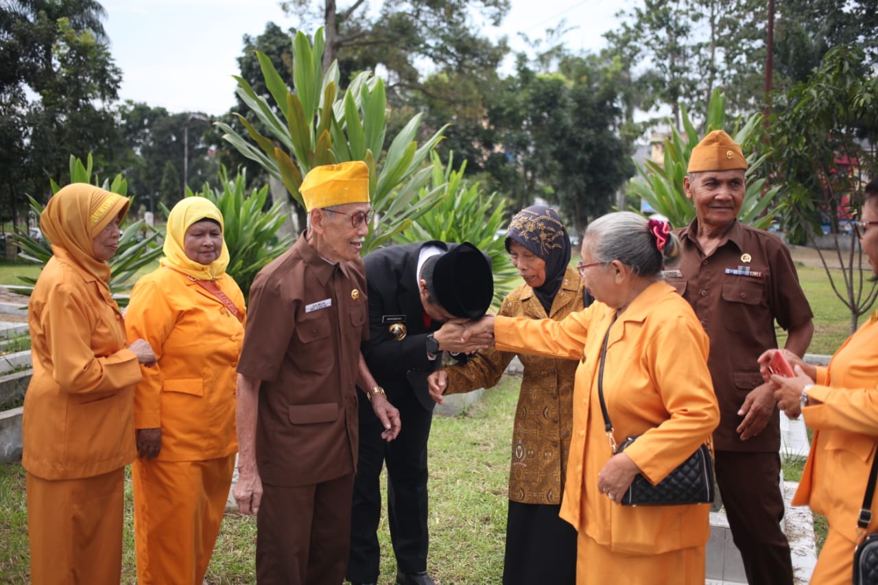 Wali kota Pematangsiantar H Hefriansyah SE.MM bersenda gurau dengan para veteran perang kemerdekaan dan tidak lupa pulak mencium tangan para veteran yang hadir. (EP)