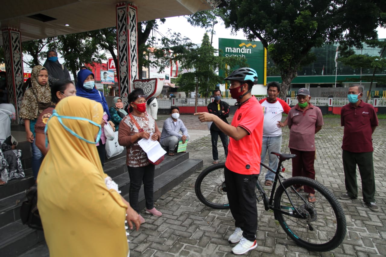 Kepada warga yang sudah mengantre untuk mengambil bantuan, Hefriansyah mengimbau agar mereka tetap mengenakan masker dan menjaga jarak serta jangan berdesakan.